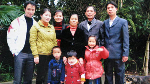 Vợ chồng bà Tam và các con, cháu (ảnh do bà Tam gửi cho tác giả). |