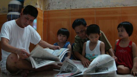 | Ông Dớn với gia đình anh Thành |