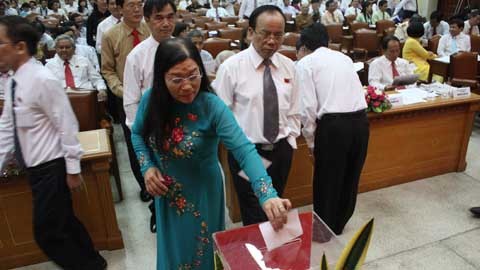 Đại biểu HĐND TP.HCM bỏ phiếu bầu các chức danh chủ chốt. |