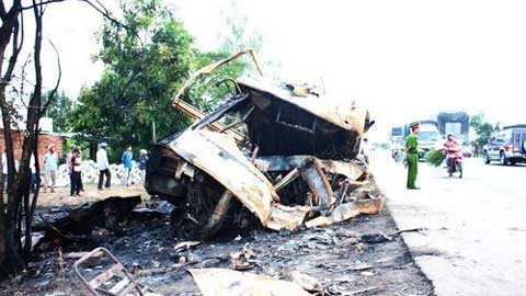 Hiện trường vụ tai nạn thảm khốc tuần trước ở Bình Thuận làm 10 người chết. Ảnh: Trần Chánh Nghĩa