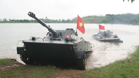 | Tăng lội nước của Lữ 147 tham gia huấn luyện đánh chiếm cửa mở |