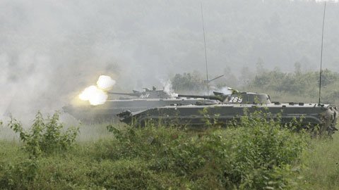 | Kíp xe tăng BMP-1 thực hiện bài bắn đạn thật |