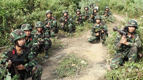 Các chiến sỹ Lữ 144 trong buổi huấn luyện lê cao có vũ khí |