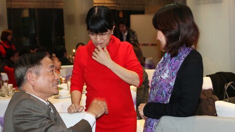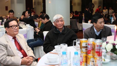 Nhà thơ Việt Phương (ngồi giữa) chia vui với VietNamNet |