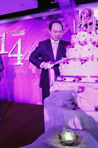 Tổng biên tập VietNamNet Bùi Sỹ Hoa cắt bánh sinh nhật |