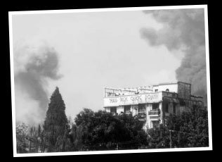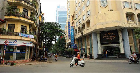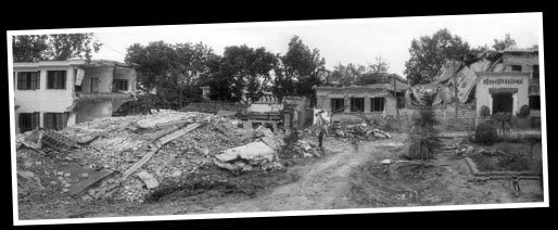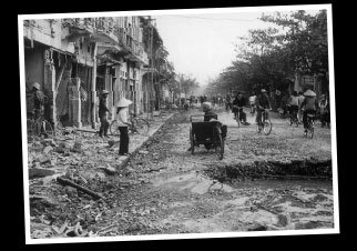 | Ngõ Lý Thường Kiệt bị tàn phá trong trận bom, sau chiến tranh đã được xây dựng khang trang bên cạnh những ngôi biệt thự mới |