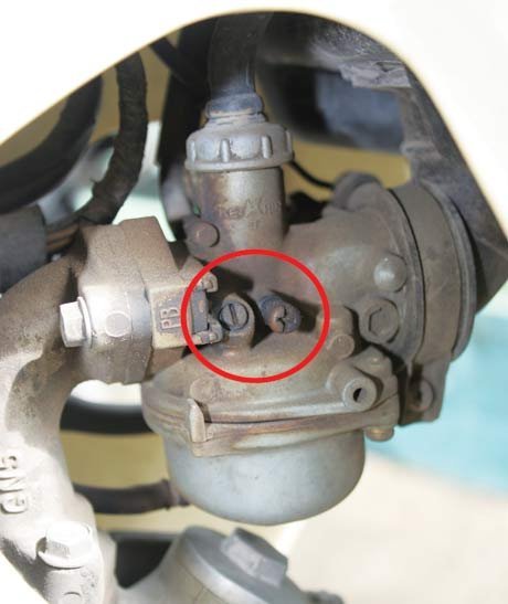 Dựng xe trên chân chống đứng. Dùng tuốc vít vặn cả ốc xăng và ốc gió vào hết cỡ. Ốc xăng là ốc nằm thẳng dưới trụ ga, ốc còn lại là ốc gió. Để nổ khoảng 5 phút cho máy nóng. Sau đó buông tay ga. Nới lỏng ốc gió chậm rãi theo chiều ngược kim đồng hồ.