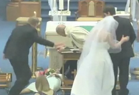 Phù dâu ngất lịm trong lúc cô dâu chú rể làm lễ