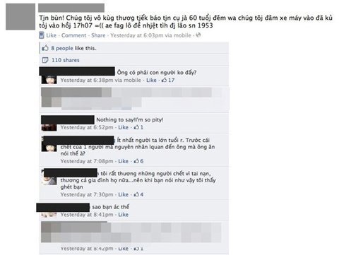 thì thôi, kẻ viết câu status này lên Facebook còn tỏ ra hả hê và phấn khởi vì nạn nhân đã chết.