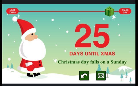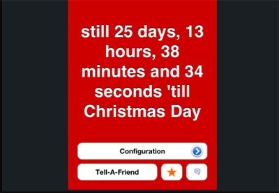 Chỉ cần chạm vào màn hình, ứng dụng này sẽ nói cho bạn còn bao nhiêu phút, giờ, ngày nữa thì đến Giáng sinh. Giống như ứng dụng đầu tiên, bạn cũng có thể email những thông số này cho bạn bè của mình.
