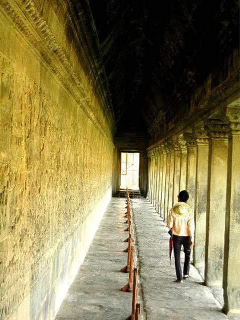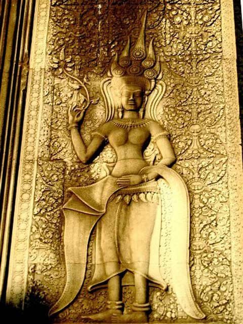 Ngoài cảm giác đó, Angkor Wat còn gây ấn tượng với những hình khắc tượng nàng tiên Apsara trên hầu hết các bức vách hay từng họa tiết hoa cỏ hay con vật được chăm chút cẩn thận vào từng bậc tam cấp của vách tường.