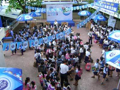 Không khí hân hoan của học sinh trường tiểu học Đại Thành, quận 11 trong ngày hội “Cùng Cô Gái Hà Lan xây sân chơi kỳ diệu”