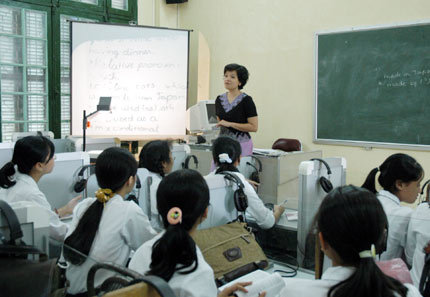 | Giờ học ngoại ngữ của học sinh Trường THPT Chu Văn An (Nguồn HNM) |