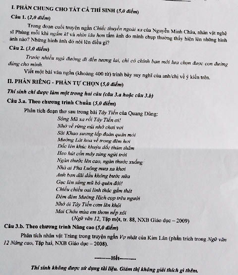 “Với câu 1, chúng em nghe tin đồn sẽ rơi vào tác phẩm Ông già và biển cả và nguyên lý tảng băng trôi của Hemingway nên cắm đầu học, thế mà đề lại ra về Chiếc thuyền ngoài xa của Nguyễn Minh Châu.