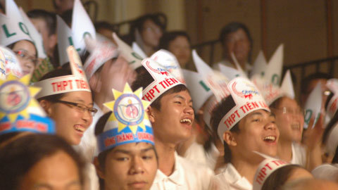 Khán giả cổ vũ cuộc thi "Đường lên đỉnh Olympia". Ảnh: Văn Chung |