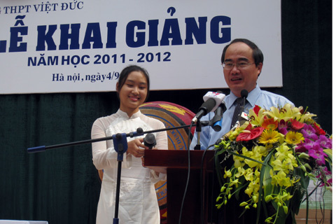 “Các em học để làm gì? Hãy nói cho tôi biết!” – trong buổi lễ khai giảng sớm tại Trường THPT Việt Đức, Phó Thủ tướng Nguyễn Thiện Nhân bất ngờ dành câu hỏi này cho học sinh lớp 12.