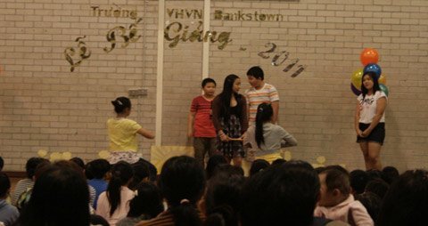 Buổi lễ bế giảng khóa học kéo dài gần 2 giờ. Các tiết mục lần lượt được giới thiệu xen kẽ với phần trao quà và phát thưởng cho các học sinh xuất sắc. Cách bài trí hội trường đơn giản, gần như không có gì ngoài 2 chùm bong bóng màu trên sân khấu. Trên bức vách nơi vị trí chọn làm sân khấu, đôi dòng chữ “trường VHVN Bankstown, lễ bế giảng 2011” được cắt dán cẩn thận.