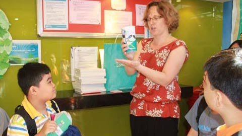 | Cô Joanna Adkin, Giáo viên của Hội đồng Anh, trao giải cho Song Anh (trái) - Ảnh: Hội đồng Anh. |