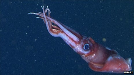 Hình ảnh loài mực Octopoteuthis deletron. Ảnh: BBC. |