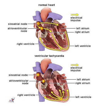 Theo DailyMail, nguyên nhân gây bệnh là do tâm thất phát đi tín hiệu lỗi, khiến cho tim đập nhanh hơn bình thường, bơm nhiều máu và với tần suất dày đặc hơn. Tâm thất có thể không có đủ thời gian để lưu thông máu và hậu quả là có thể gây đau thắt vùng ngực, chóng mặt, ngất xỉu.