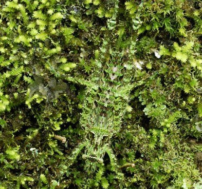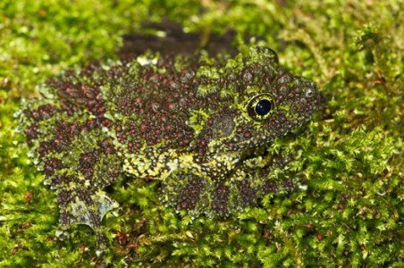 16. Một con ếch rêu ở Việt Nam rất khó bị phát hiện khi nằm giữa đám rêu xanh.