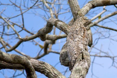 7. Một chú chim potoo ngụy trang với màu lông giống với thân cây trong một khu rừng ở Brazil.