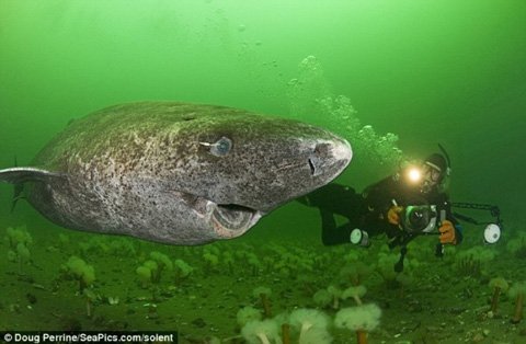 Những con cá mập vùng Greenland này có thể sống hơn 200 năm ở độ sâu 600 mét dưới vùng biển bắc đại tây dương. To lớn hơn loài cá mập trắng nổi tiếng, loài cá mập này dài gần 7 mét và nặng 1 tấn, trông rất đáng sợ vì chúng có thể ăn cả gấu bắc cực. Chúng thường sống xa về phía bắc so với những loài cá mập khác và có thể bơi trong nước có nhiệt độ chỉ 10 độ C.
