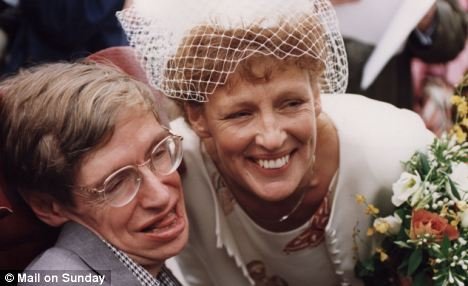 | Giáo sư Hawking hạnh phúc bên Elaine trong ngày cưới. |