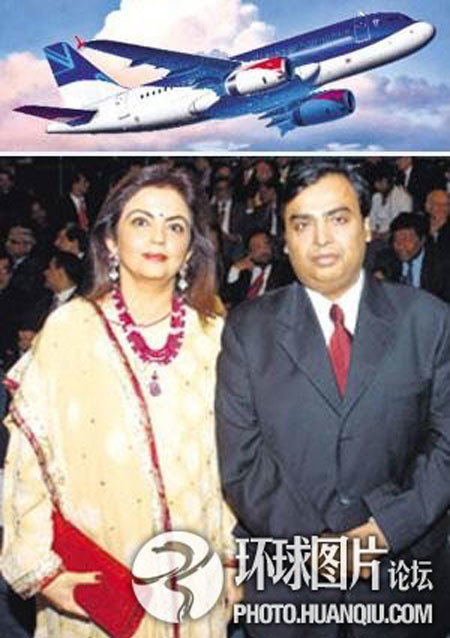| Vợ chồng tỷ phú Mukesh Ambani và chiếc máy bay siêu sang có thể chở tới 120 người. Nguồn: Huanqiu.com. |