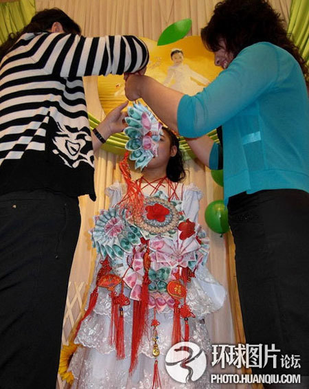 | Sốc với quà sinh nhật lủng lẳng tiền mệnh giá lớn trên đeo trên cổ cô bé Yến Yến. Nguồn: Huanqiu.com. |
