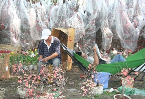 Đối lập với nét mặt tươi rói của người bán lan là nỗi lo của những người bán mai, đào, quất… Bỏ ra số vốn khổng lồ để chuyển cả nghìn cây đào từ Hà Nội về TP.HCM với hy vọng sẽ ẵm được khoản hời kha khá, nhưng đến chiều 27 Tết anh Nguyễn Văn Lương mới chỉ bán được chưa đến 100 cây.