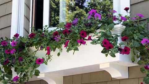 Còn nếu không có ban công, hoặc ban công đã được trưng dụng vào "chức năng" khác, thì bạn có thể treo những giỏ hoa hoặc làm những bồn hoa nhỏ dưới bệ cửa sổ. Thông thường cách này chỉ áp dụng với những cửa sổ là dạng cửa trượt, cửa chớp hoặc là cửa mở vào bên trong.
