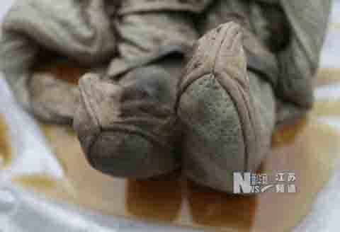 | Xác ướp được ngâm trong một dung dịch màu vàng nâu |
