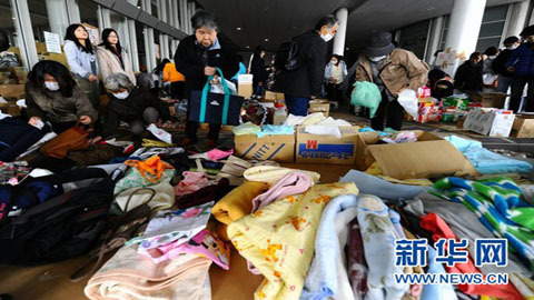 Người dân vùng xảy ra thảm họa hôm 11/3 vẫn đang sống tại những nơi trú ẩn tạm thời (Ảnh: Xinhuanet)