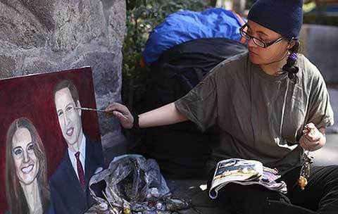 Estibalis Chavez vẽ ảnh chân dung Hoàng tử William và Kate Middleton. (Ảnh: AP)