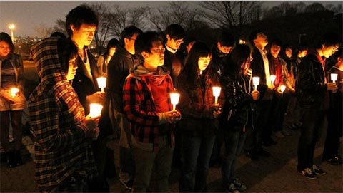 | Sinh viên Kaist thắp nến cầu nguyện cho các sinh viên tự tử. (Ảnh: AP) |