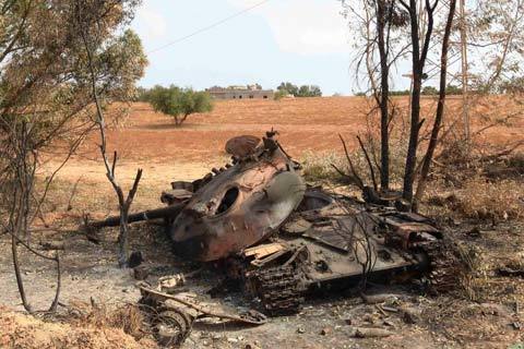 Một xe tăng bị phá hủy thuộc về lực lượng trung thành với nhà lãnh đạo Muammar