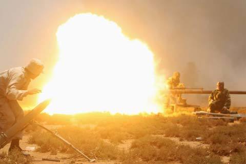 Gaddafi gần Misrata, chiến tuyến phía tây, hôm 24/5. (Ảnh: Reuters)