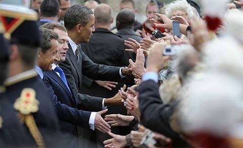 thống Mỹ Barack Obama chào hỏi đám đông tại hội nghị G8 ở Deauville. (Ảnh: AP)
