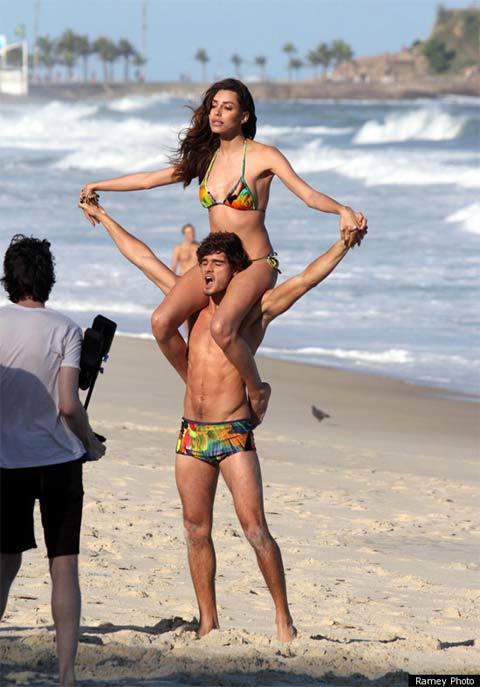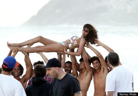 dịch quảng cáo quần áo bơi đầu tiên của cô cho hãng Blue Man trên bãi biển ở