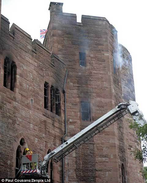 "Ngọn lửa cực kỳ dữ dội, và do sàn lâu đài cùng với các đồ đạc đều bằng gỗ nên đám cháy mất nhiều giờ mới kiểm soát được", một phát ngôn viên cho biết. "Tuy nhiên, các nhân viên cứu hỏa đã ngăn được lửa không lan ra phần còn lại của tòa nhà và nhờ các bức tường dày nên hy vọng tòa nhà sẽ vẫn đứng vững về cấu trúc".