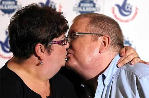 Colin và Christine Weir sẽ có 5 triệu bảng tiền lãi một năm hoặc cứ mỗi phút lại có 10 bảng, như Daily Mail tính toán. Cặp đôi may mắn nhất nước Anh này có lẽ cũng là cặp đôi đáng yêu nhất: Cặp đôi này đã hôn nhau thắm thiết tại cuộc họp báo.