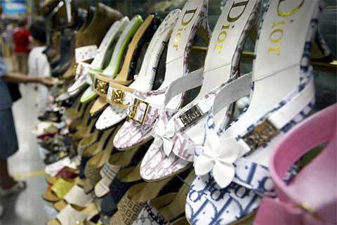 1) Giày dép nhái các thương hiệu nổi tiếng tại một khu chợ ở Bắc Kinh