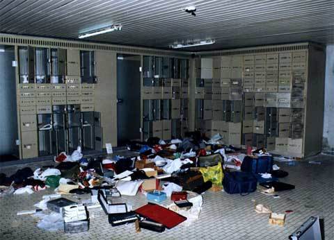 Trong số 160 hộp ký gửi an toàn, nơi các nhà buôn bán kim cương cất giữ số đá quý của họ - thường chỉ cất giữ qua đêm trong khi thương thảo mua bán - chỉ có 123 hộp bị khoắng sạch. Do phải mang quá nhiều kim cương, bọn trộm tha cho 37 hầm chứa và khi các nhân viên Trung tâm Kim cương tới hiện trường họ thấy các viên kim cương nằm vương vãi dưới đất.