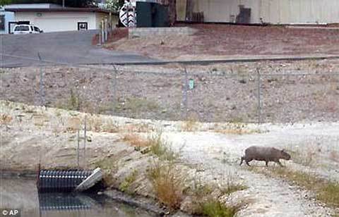 Con vật bị phát hiện ở một cơ sở xử lý nước thải tại Paso Robles, cách Los Angeles 280km về phía tây bắc. Một nhân viên nhà máy đã chụp được ảnh con vật khi nó bò ra khỏi một cái ao.