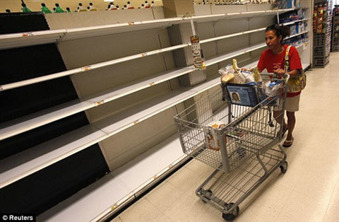 | Người dân vét sạch hàng hóa trong một siêu thị ở Long Island để sẵn sàng đối phó với siêu bão. (Ảnh: Reuters) |