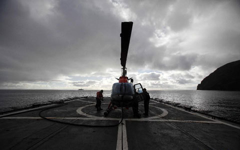 | Một chiếc trực thăng của Chile chuẩn bị cất cánh tìm kiếm những mảnh vỡ của chiếc phi cơ bị rơi ở quần đảo Juan Fernandez. (Ảnh: THX) |