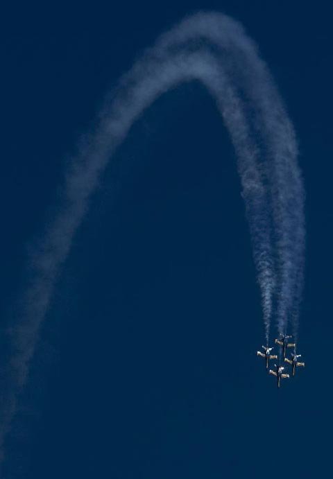 | Một pha trình diễn đẹp mắt tại triển lãm hàng không Miramar ở San Diego, California, Mỹ hôm 30/9. (Ảnh: THX) |