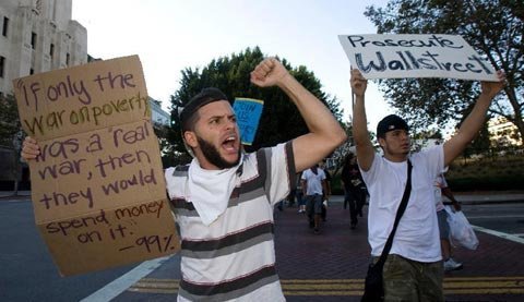 | Phong trào "Hãy chiếm Phố Wall" lan rộng tới Los Angeles, California. (Ảnh: THX) |