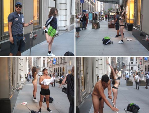 Với mục đích "loại bỏ những ánh hào quang ảo tưởng của phố Wall", nghệ sỹ Zefrey Throwell đã chỉ đạo 50 diễn viên thực hiện bộ ảnh khỏa thân ngay tại trung tâm tài chính lớn nhất nước Mỹ vào lúc 7 giờ sáng.